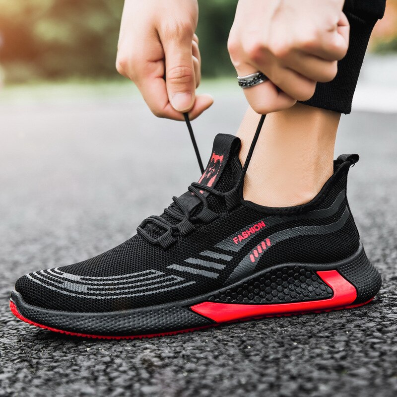 Sneakers Pria Modis Sepatu Olahraga Kasual Jaring Tenun Fly Sepatu Lari Bergaris-garis Terang Sepatu Tenis Antiselip Sepatu Bobocze Meskie